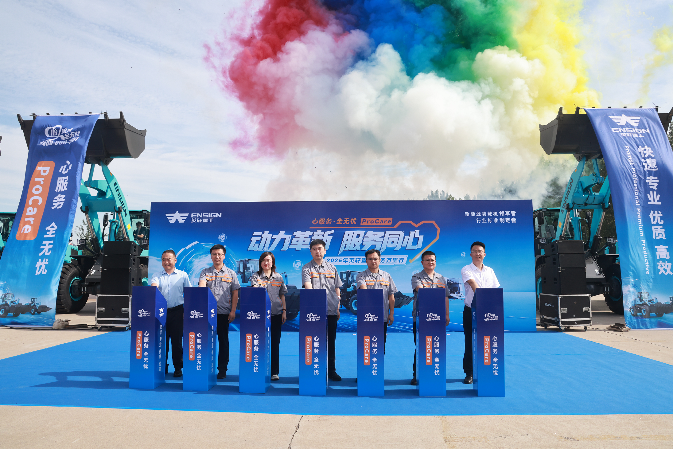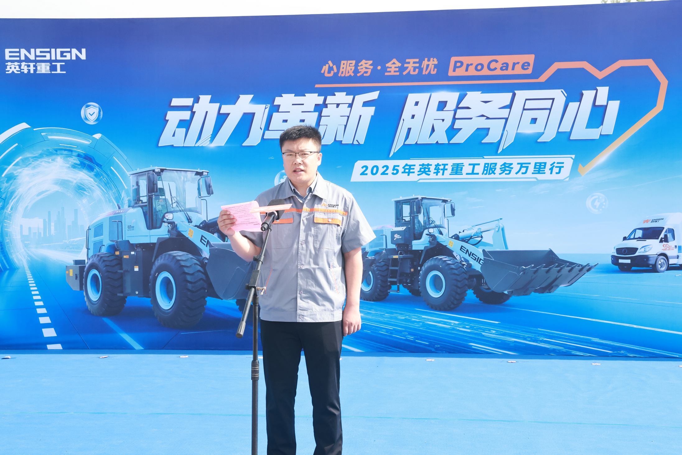 战鼓擂动,催人奋进。随着英轩重工2025年服务万里行和“出彩好技师,关爱中国行”第六季活动的盛大启幕,以及“心服务 全无忧·ProCare”服务品牌的正式发布,英轩重工将树立“快速、专业、优质、高效”的服务新标准,保证新能源技术与服务技能的同频发展,保障产品全生命周期的用车无忧,构建客户间的长期价值纽带关系,共同书写新能源时代的服务新篇章。