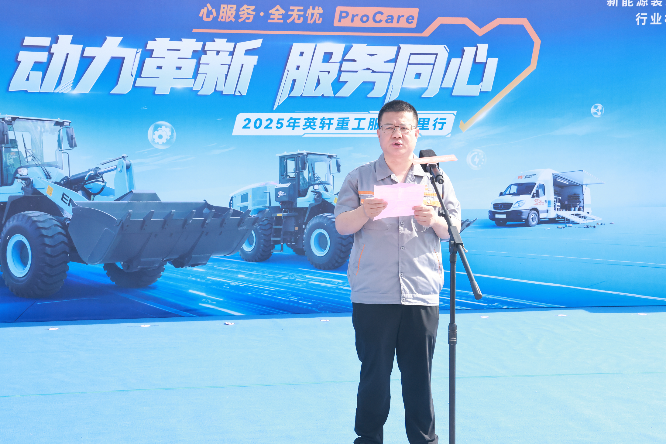 本次活动正式发布“心服务 全无忧·ProCare”服务品牌,这是英轩重工深化“以客户为中心”理念、构建新能源服务竞争力的关键举措,也是英轩重工服务体系的再升级,更是品牌发展的里程碑。