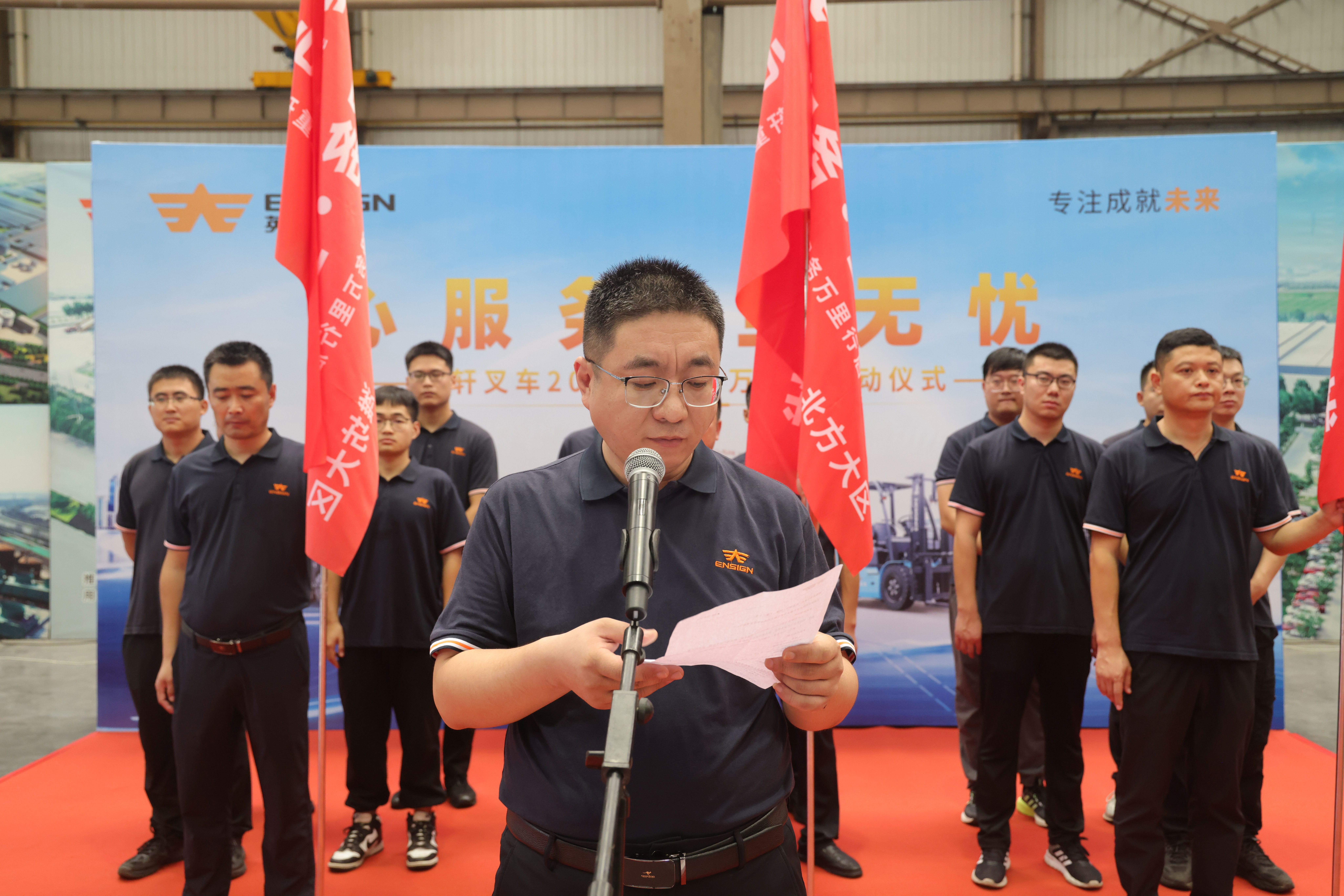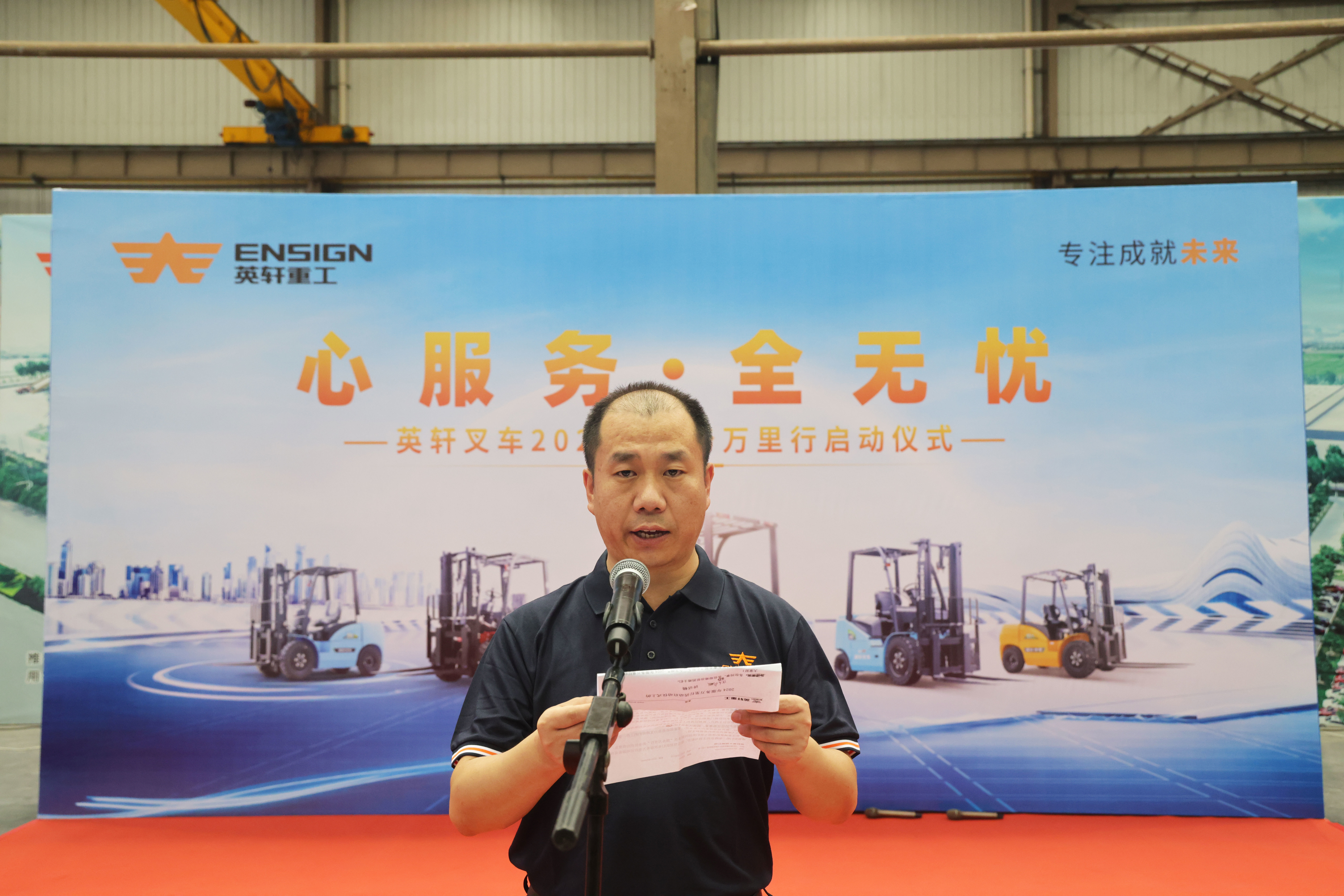 初心如磐担使命,奋楫笃行谱新篇。2024年7月17日,值盛夏热浪滚滚之时,英轩重工叉车事业部再度高擎服务大旗,毅然开启2024年“心服务·全无忧”服务万里行新征途。英轩集团总裁李彦轩、英轩重工叉车事业部常务副总经理潘广建、英轩重工总经理助理李江涛,以及叉车事业部相关领导出席本次活动,各供应商代表及服务团队汇聚一堂,共同见证这一重要时刻。