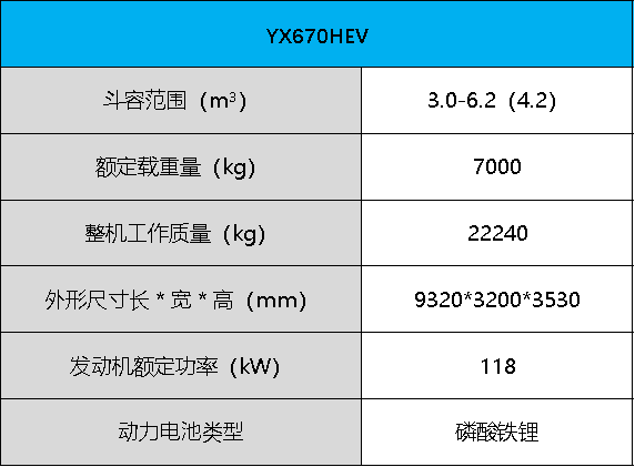 产品定位:YX670HEV混合动力电动装载机额定载重量7000kg,大开档铰接设计,超长轴距配置。采用国四集成式高效增程器,无需添加尿素,大幅度降低燃油消耗,降低使用成本。混合动力装载机适用于砂石料、煤炭、港口、矿山等作业场景,几乎可实现全工况覆盖。
